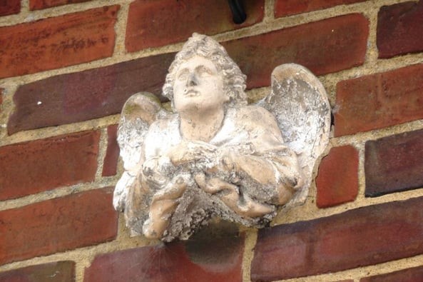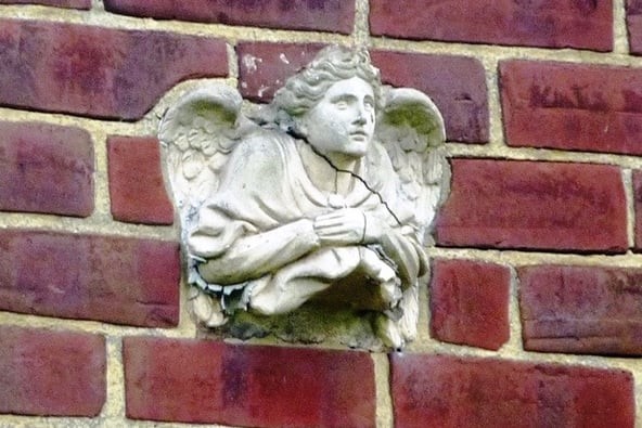 The Gargoyles were saved following the demolition of the old Vicarage in the Street
