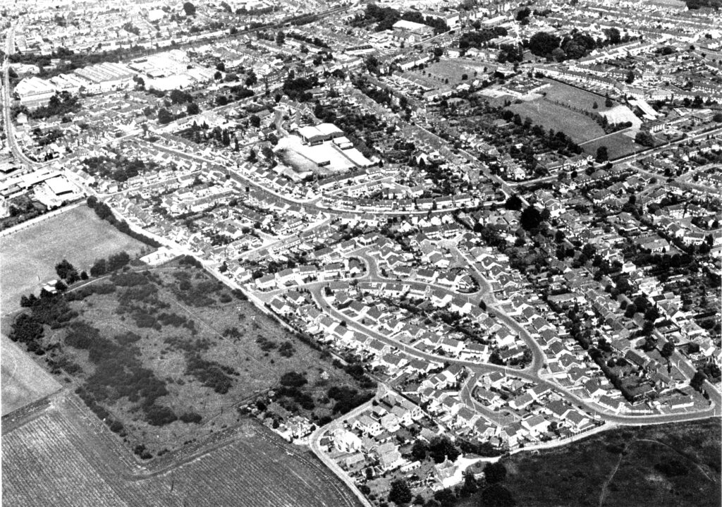 Cryalls Lane from the air 1980’s. Borden Lane on the right with trees. Staplehurst Road junction with the A2 top left.
